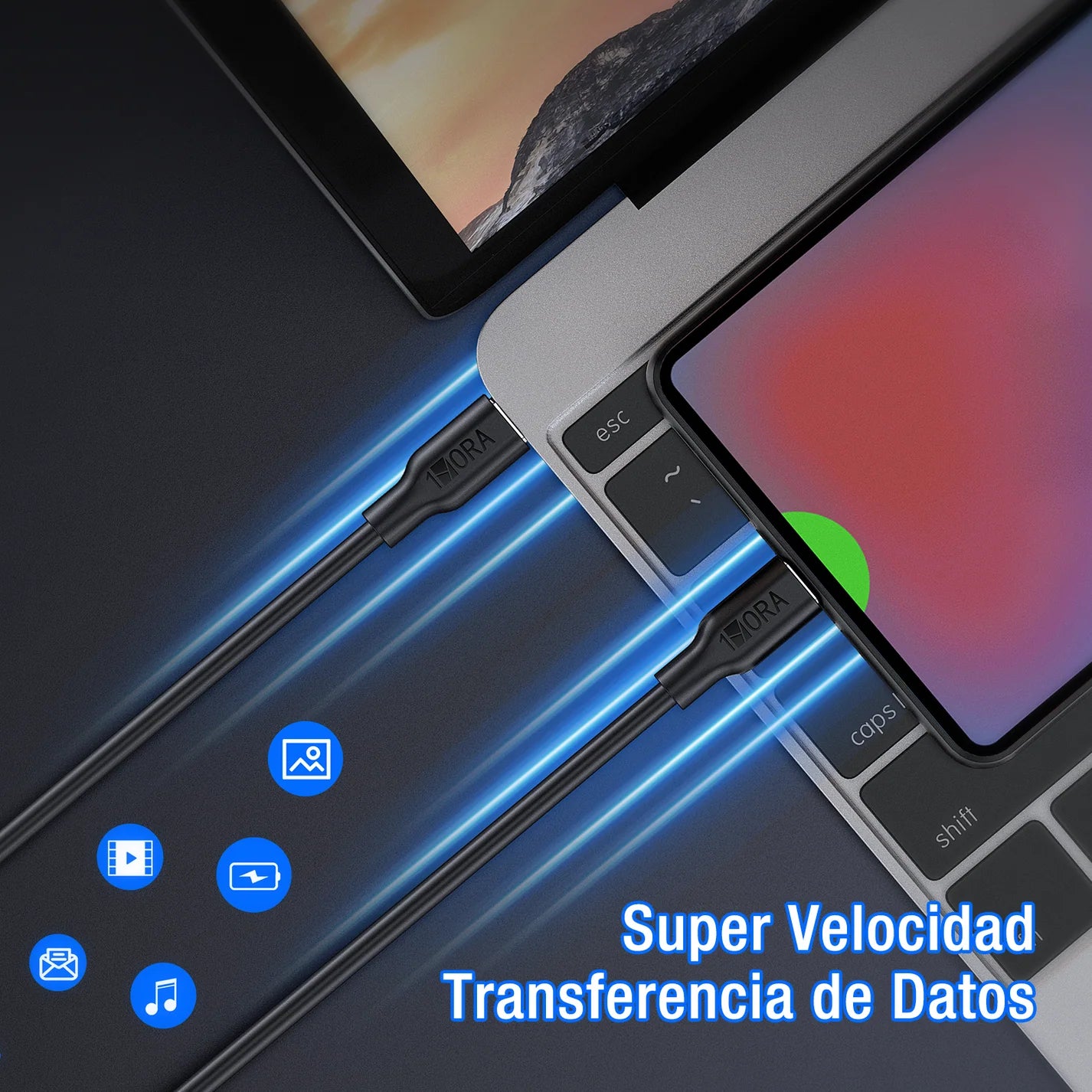 El cable 1Hora CAB252 combina diseño moderno, durabilidad y carga rápida. Ideal para transferir datos y cargar tus dispositivos USB-C de manera eficiente y segura.